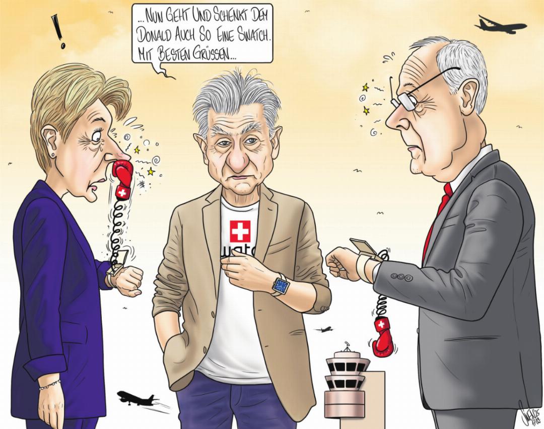 Nick Hayek, der Chef der Swatch Group, reagiert mit einer «positiven Provokation» auf den US-Strafzoll von 39 Prozent. Dem Bundesrat und den Parteien wirft er vor, ein «katastrophales Signal» auszusenden. Das neuste Swatch-Modell trägt den Namen «What if…Tariffs?». Tariff, der englische Begriff für Zoll, ist Trumps Lieblingswort. Auffällig ist das vertauschte Ziffernpaar 3 und 9, eine Anspielung auf die Höhe der US-Zölle von 39 Prozent.