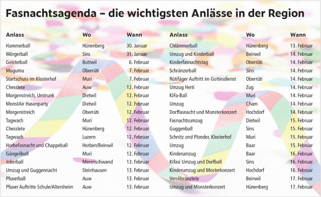 Fasnachtsagenda – die wichtigsten Anlässe in der Region