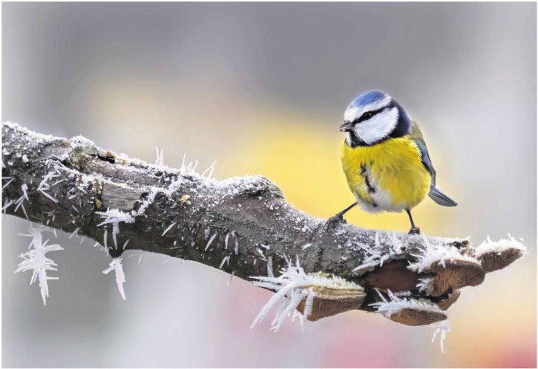 Letzte Woche verzauberten Nebel und Kälte die Landschaft. Raureif oder «Biecht» bildete sich überall mit wunderbaren Strukturen. Es sah herrlich aus. Ich entdeckte den Frost auf einem Ast neben meinem Futterhäuschen, wo sich immer wieder die Meisen mit den ergatterten Körnern hinsetzten, um sie zu knabbern. Eine Blaumeise (Cyanistes caeruleus) stellte sich provozierend hin, weil sie unbedingt aufs Bild wollte.