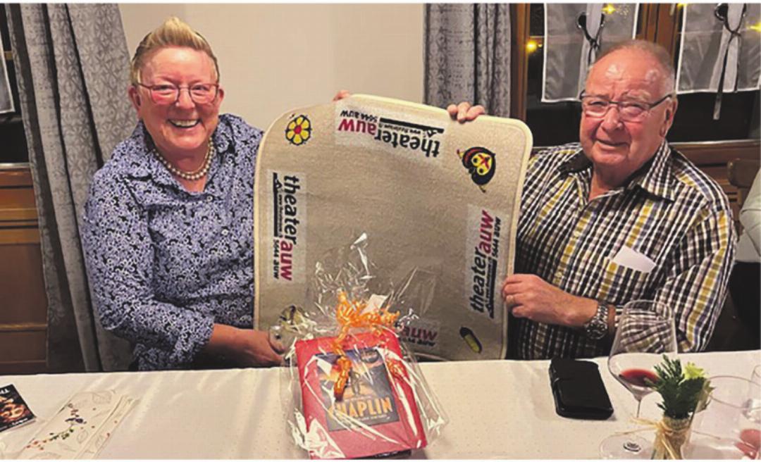 Der Präsident überreichte beiden ein Geschenk, mit dem sie sich regelmässig an ihre vielen Jahre Theater Auw erinnern dürfen. Herzliche Gratulation und ein grosser Dank an die beiden für ihr jahrzehntelanges Engagement.