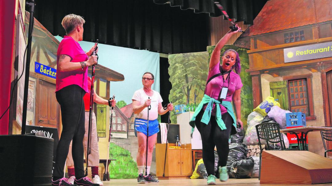 Die Sport-Geschichte ändert sich aber, als die beiden neuen Angestellten des Wirts auftauchen und nebst dem Kochen und Bedienen der Gäste auch Walking-Touren anbieten. Denn sowohl der Metzger Karl als auch der Bäcker Rolf spüren den zweiten Frühling und werden walking-süchtig. Gabi Renfer (Manuela Feldmann) und Bea Heller (Andrea Hunziker) jagen die alten Männer durch die Gegend, trainieren, dehnen – und das jeweils mit ihrem einzigartigen Motivationssong. Schlussendlich werden die Lügen aufgedeckt, die falschen Anschuldigungen korrigiert, und die Frauen werden wieder versöhnlich.