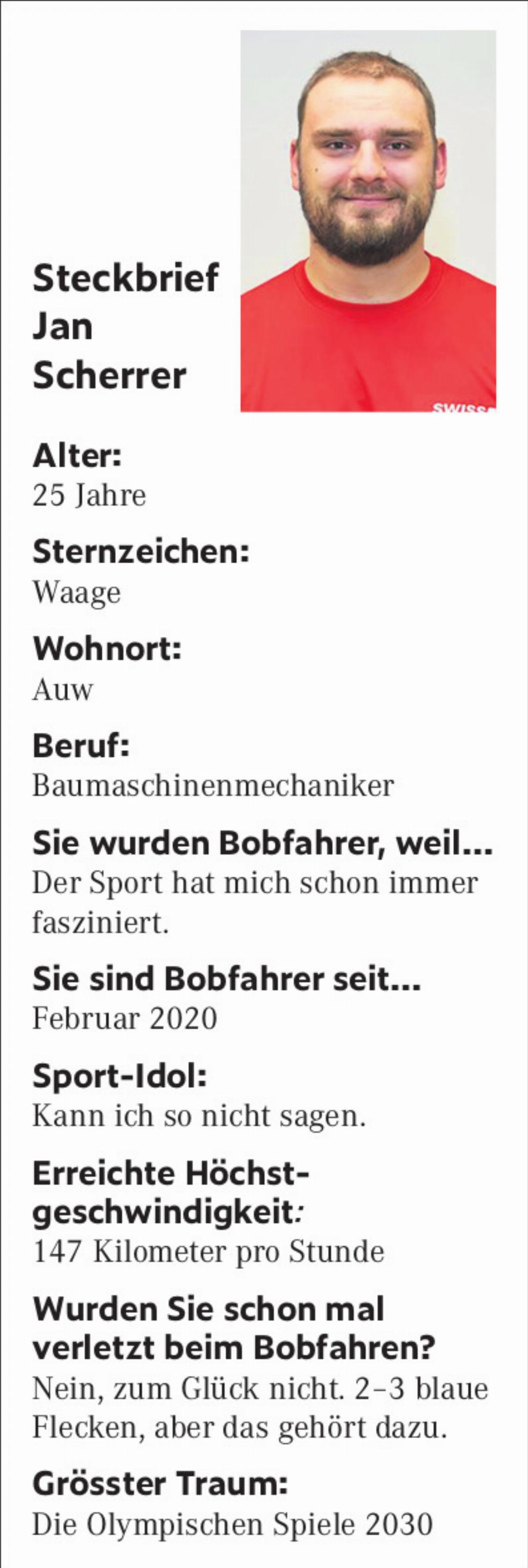 Rückblickend auf die vergangenen Saisons ist der 25-jährige Auwer Jan Scherrer zufrieden. «Bobfahren ist meine Leidenschaft – da blühe ich auf. Das geht auch meinem Team so.» An der Europa-Meisterschaft im Februar 24 wurden sie in der U23 Vize-Europameister, in der U26 reichte es für Platz vier.