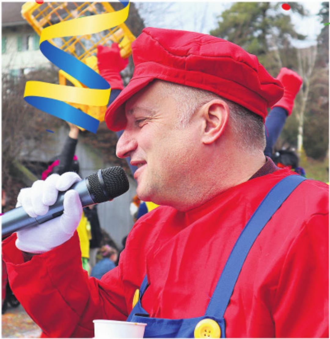 Speaker Michi Tschudi begleitete den Umzug mit launigen Sprüchen und spontanen Interviews. Zum Schluss übergab er das Mikrofon an Mäsi Sidler, der es sich nicht nehmen liess, allen Beteiligten für ihren Einsatz zu danken.