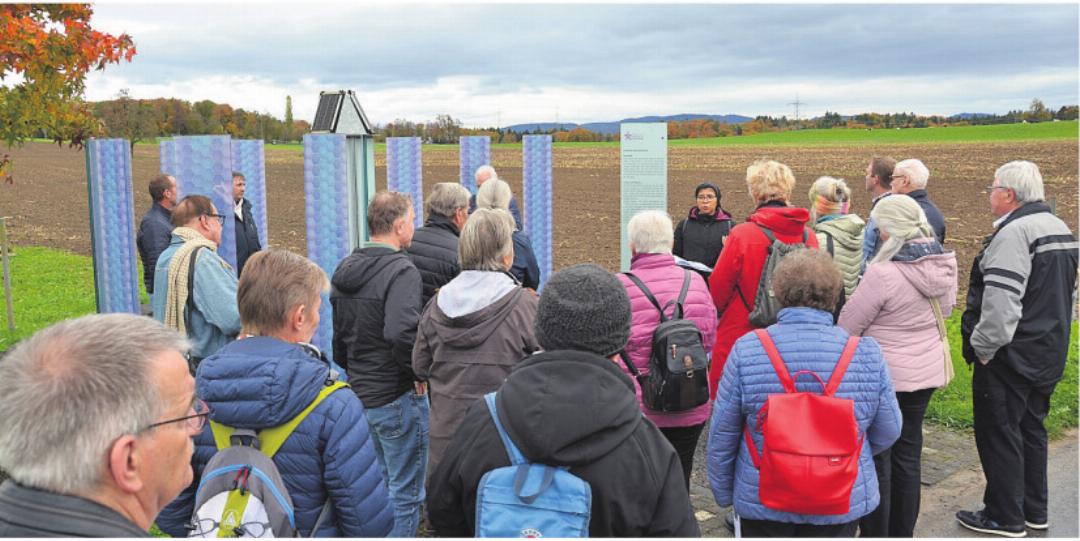 Nach den eindrücklichen Erzählungen in der Kirche begaben sich die Teilnehmenden gemeinsam auf den Maria-Bernarda-Besinnungsweg, der rund um Auw führt. Begleitet von Schwester Flormita machten sie Halt an den verschiedenen Stationen, die mit Kunstwerken und Texten die Spiritualität der Heiligen erlebbar machen. Beim Geburtshaus von Maria Bütler, an dem der Weg vorbeiführt, spürte man besonders die Verbindung von Biografie und Berufung: Wie aus einem einfachen Leben auf dem Land eine Heilige wurde, deren Glaube weit über die Grenzen der Schweiz hinauswirkte. Während des Rundgangs blieb Zeit für Gespräche, für Stille und für das gemeinsame Nachdenken über Berufung, Verantwortung und Hoffnung in der Kirche von heute – Themen, die auch das synodale Miteinander prägen.