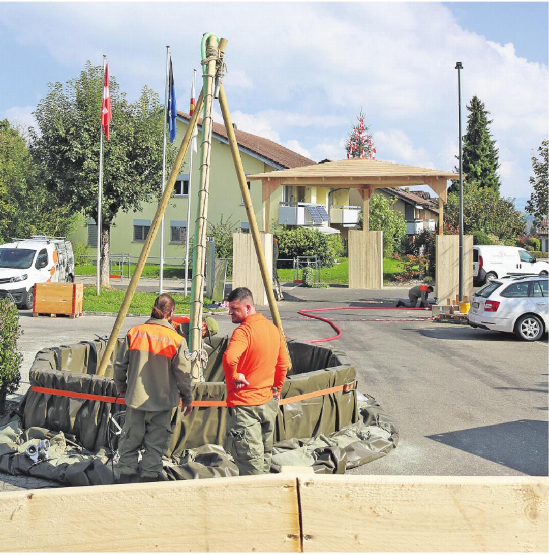Insgesamt waren auch 25 Zivilschützer auf dem Platz, die mithalfen, die Bauten zu errichten, auch die Eingangspforte.