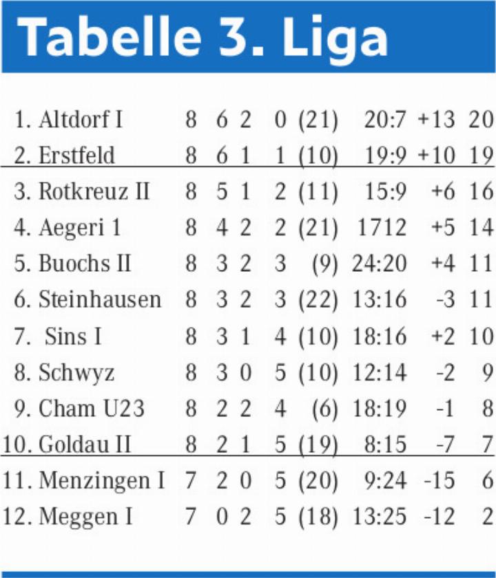 Das nächste Meisterschaftsspiel findet am Sonntag, 19. Oktober um 14 Uhr in Menzingen statt.
