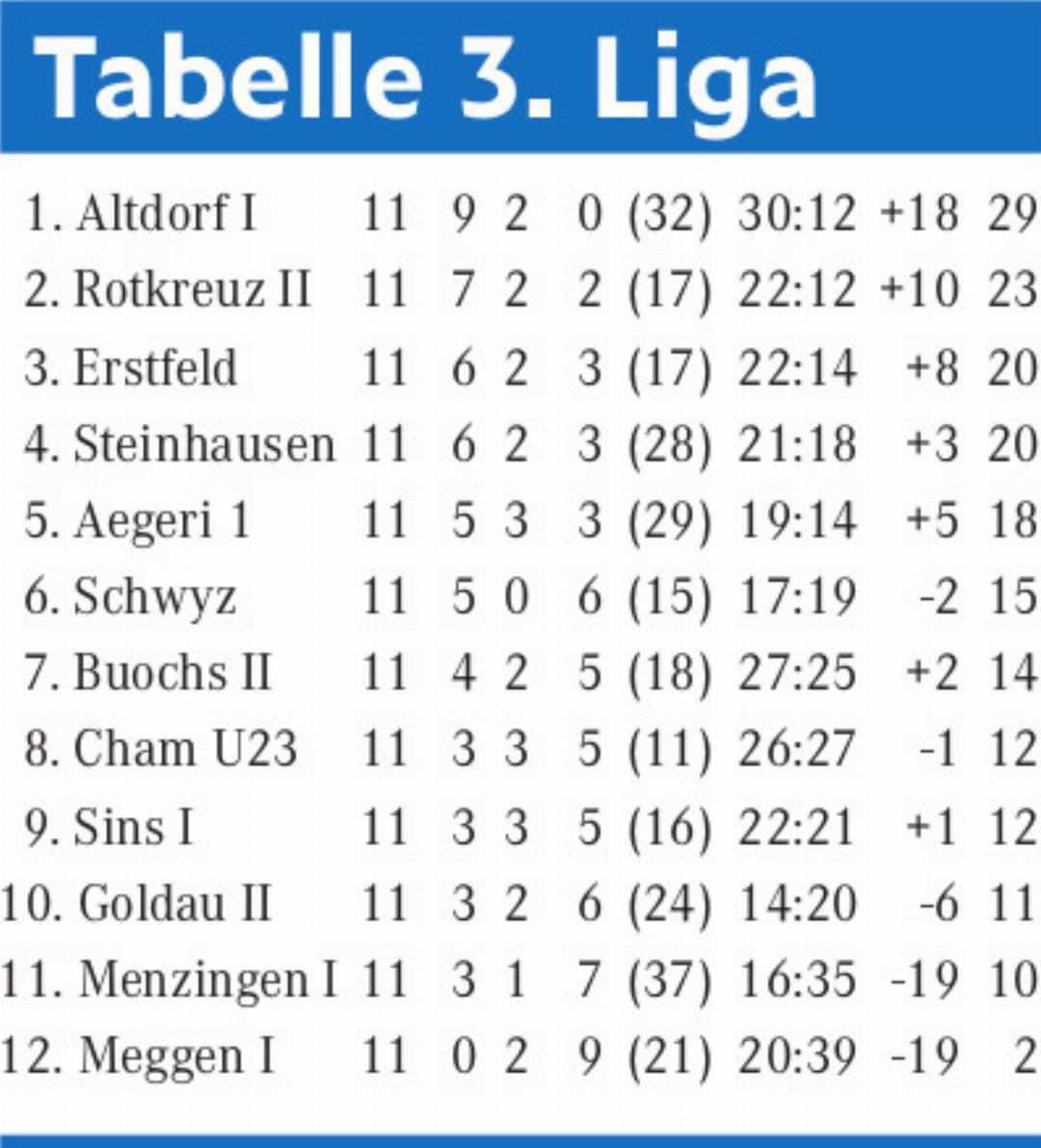 Minute Pech, als Yanick Kreienbühl nur die Latte traf. Besser machte es zehn Minuten später Sven Niederberger, welcher den FC Sins mit einem trockenen Schuss 0:1 in Führung brachte. Nicolas Schetty hatte nur wenige Minuten danach die grosse Chance, die Führung auszubauen. Er scheiterte jedoch allein vor Torhüter Vinzens. Die kalte Dusche für die Sinser folgte in der 76. Minute. Aus einem Freistoss erzielte Sidler per Kopfball den für das Heimteam eher schmeichelhaften Ausgleich. Es war wiederum der erste richtige Abschluss des FC Rotkreuz in der zweiten Halbzeit. In der Schlussviertelstunde suchten nun endlich beide Mannschaften die Entscheidung. Es blieb aber bis zum Schluss beim für den FC Sins eher enttäuschenden 1:1. Trotzdem nimmt man diesen Punkt gerne mit nach Hause. Der Gegner war immerhin der zweitplatzierte FC Rotkreuz. Das junge Sinser Team bleibt nach der Vorrunde auf dem 9. Tabellenrang mit zwölf Punkten.
