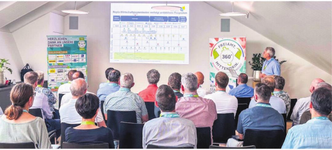 Im Juli nahmen rund 30 Unternehmenspartner am Startschuss-Event der Kampagnenphase 4 von «FREIAMT. MITTENDRIN.» teil. Im Mittelpunkt stand die aktuelle Kampagne «360° Rundumblick». Die Repla setzte den Fokus auf die Vielfalt des Oberen Freiamtes. Eine Vielfalt, die zu einer starken und lebenswerten Region beiträgt. Der Anlass wurde zudem genutzt, die Interessen und Überlegungen der regionalen Unternehmen abzuholen. Im Anschluss tauschten sich die Anwesenden zu wichtigen Entwicklungsfragen aus.
