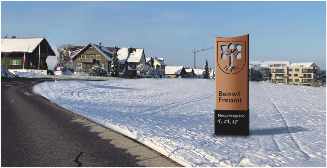 Die 30-tägige Auflagefrist für das Projekt zur neuen Dorfeingangsgestaltung ist seit dem 6. Januar abgeschlossen, Einsprachen sind während dieser Zeit keine eingegangen. Damit ist ein weiterer wichtiger Schritt für die Erneuerung der Willkommenstafeln getan, die künftig Beinwil repräsentieren sollen. «Das Ziel der neuen Tafeln ist eine identifikationsstiftende Lösung für das grossflächige Gemeindegebiet, inklusive Horben», erklärt Gemeindeammann Stefan Zemp. Neben den eigentlichen Stelen sind vorproduzierte Einschubtafeln vorgesehen, die für Botschaften wie Hinweise auf Gemeindeversammlungen genutzt werden können. «In Absprache mit den Vereinen haben wir auf eine weitergehende Informationsübermittlung verzichtet. Die Vereine bewerben ihre Veranstaltungen weiterhin individuell», so Zemp. Ebenso wird bewusst auf eine digitalisierte Darstellung der Informationen verzichtet.