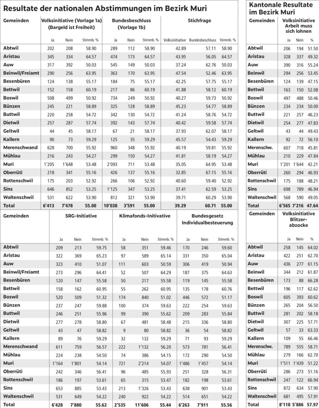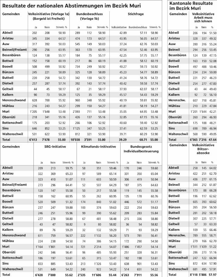 Resultate der nationalen Abstimmungen im Bezirk Muri