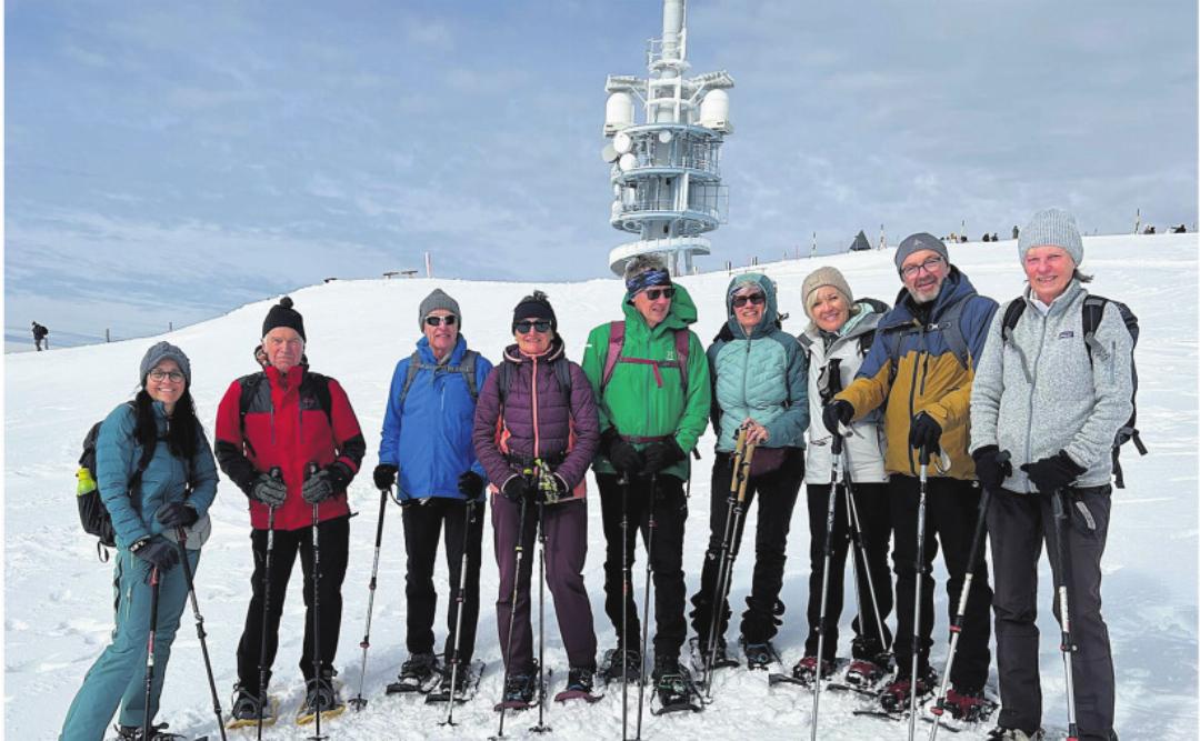 Zwei Routenvorschläge für Samstag waren ausgeschrieben. Die beiden Touren mussten allerdings abgesagt werden wegen ungeeignetem Wetter. Am Sonntag, 22. Februar starteten fünf Damen und vier Herren der Frauen- und Männerriege Merenschwand zu einem neuen Tourenziel ins Rigi-Gebiet. Mit dem Auto via Arth-Goldau nach Kräbel, mit der Rigibahn bis Fruttli auf 1’150 Meter. Schneeschuhe montieren und los ging’s. Über das Restaurant Schwendi erreichten wir nach ca. zweieinhalb Stunden Rigi Kulm auf 1’800 Meter. Die Riginadel auf dem Gipfel und das fantastische Panorama sind immer wieder eindrücklich. Erfreulicherweise zeigte sich die Sonne länger als die Wetterprognosen angesagt hatten. Nach kurzer Einkehr im Hotel Kulm stiegen wir via Kulmhütte ab nach Rigi Staffel. Die aus der Vereinskasse finanzierten Kaffees avec mundeten sehr und werden hiermit bestens verdankt.