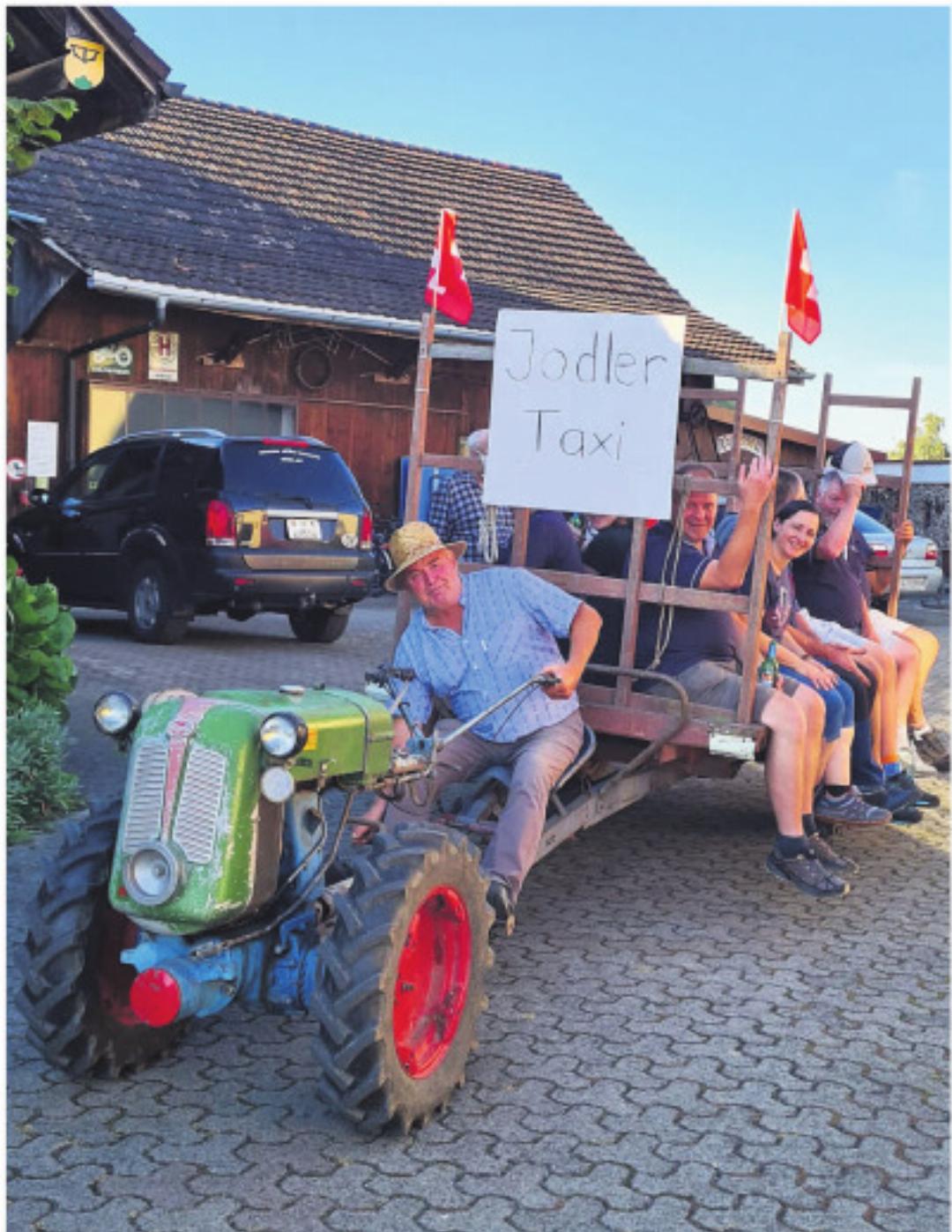 Ein feines Nachtessen wartete im Restaurant Kreuz im Schoren auf uns. Oski Betschart aus dem Schoren fuhr mit dem «Einachser» – neu als Jodlertaxi im Einsatz – vor, und wir durften eine kleine Ausfahrt, vorbei am Reisfeld der Familie Suter, geniessen. Herzlichen Dank, Oski! Wir liessen die schöne Reise im Restaurant Kreuz bei einem feinen Nachtessen ausklingen. Herzlichen Dank an René, Oskar und Edith für die tolle Organisation! Auch das Wetter habt ihr super bestellt – es war ein traumhafter Tag!