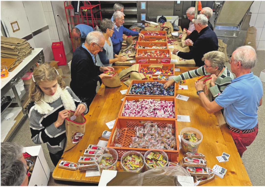 Von morgens bis weit in den Nachmittag wurde abgepackt. 20’000 Sugus, 600 Kilogramm Erdnüssli – und ganz viele weitere Köstlichkeiten wurden in die Säckli verpackt. Besonders erwähnenswert ist hier der Kakaopreis, der enorm gestiegen ist und fast doppelt so viel kostet wie noch vor einem Jahr. Die fertigen Säckli – rund ein Kilogramm schwer – wurden danach so rasch wie möglich verteilt. Nach Abzug des befüllten Materials bleibt ein Reingewinn von rund acht Franken pro Säckli.